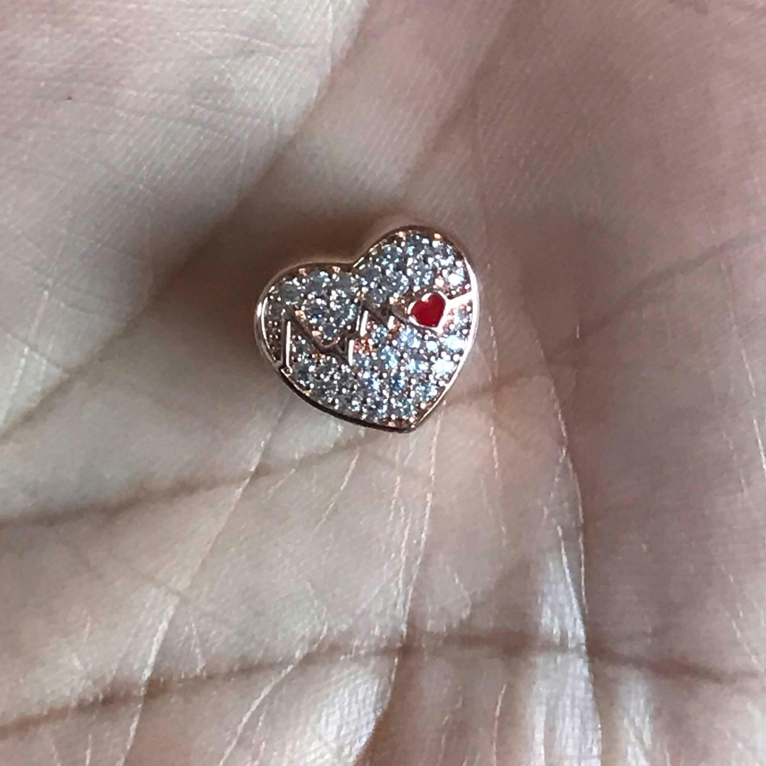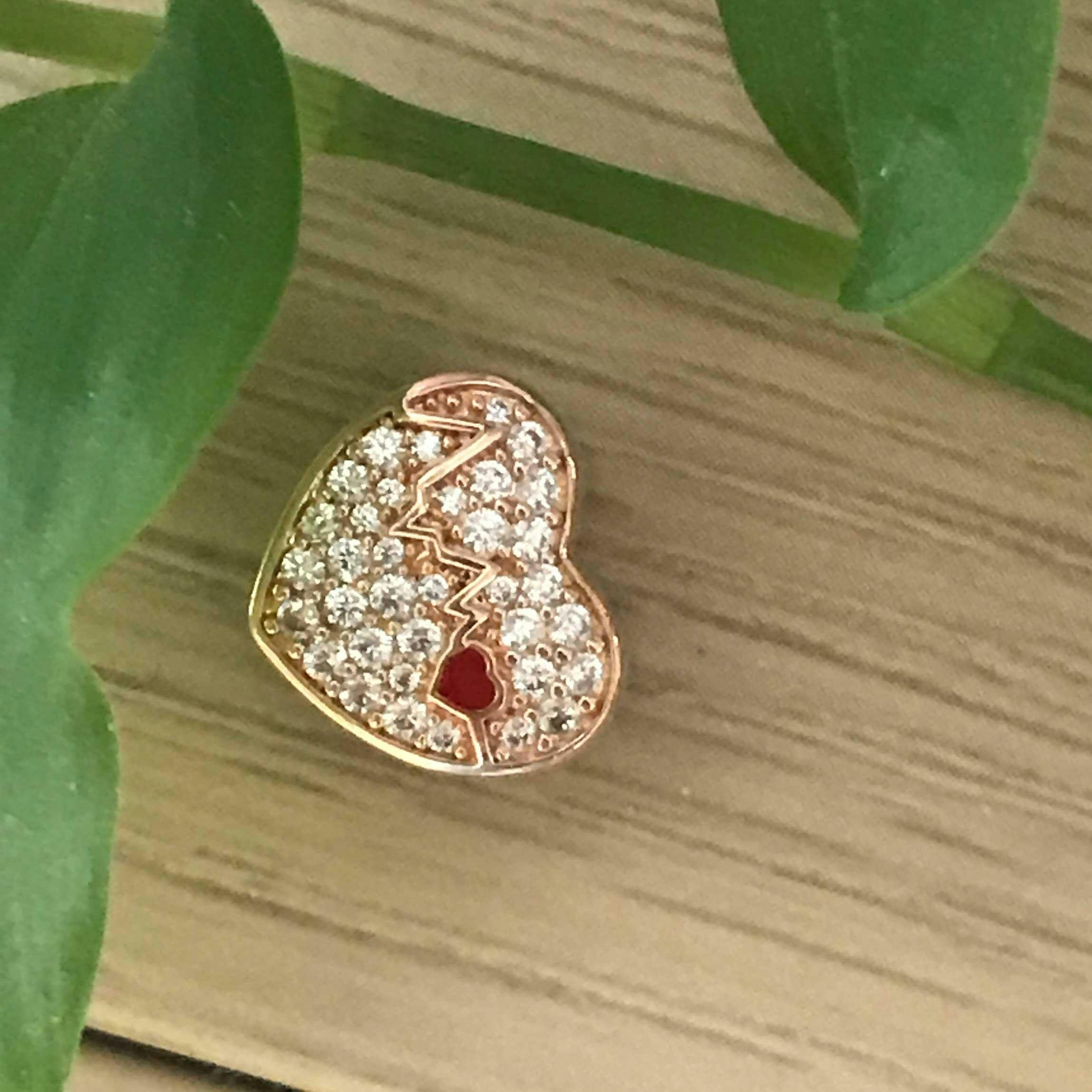Beating Heart Photo Charm 925 Sterling Silver 18k Rose Gold Plated with Cubic Zirconia