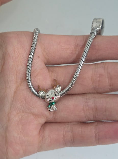 Add a touch of woodland wonder to your holiday jewelry with this exquisite Gnoce charm. Meticulously handcrafted from 925 Sterling Silver, it features an adorable elk design that perfectly captures the festive spirit. This charming piece makes a perfect Christmas gift, bringing forest magic and holiday cheer to any bracelet. Its delicate detailing and shimmering finish will make it a cherished part of your seasonal celebrations for years to come.