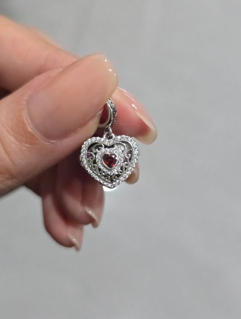 Gnoce Personalized Photo Hollow Heart Birthstone Pendant Dangle Charm