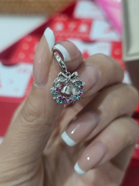 JSC178Adorn your holiday jewelry with this exquisite Gnoce Christmas charm! Meticulously handcrafted from 925 Sterling Silver, it features an elegant wreath design with a delicate bell dangling at its center. This enchanting piece captures the festive spirit perfectly, creating a gentle jingle with every movement. An ideal Christmas gift that beautifully complements other holiday-themed charms, adding timeless elegance to any bracelet or necklace while spreading seasonal joy and warm wishes.